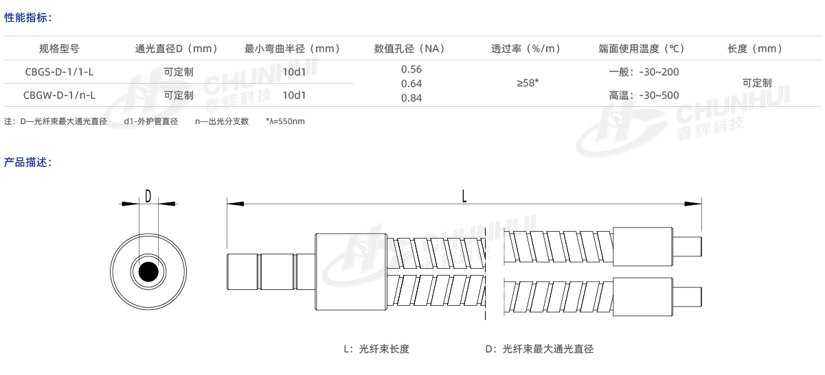 多種芯徑、數值孔徑可供選擇;